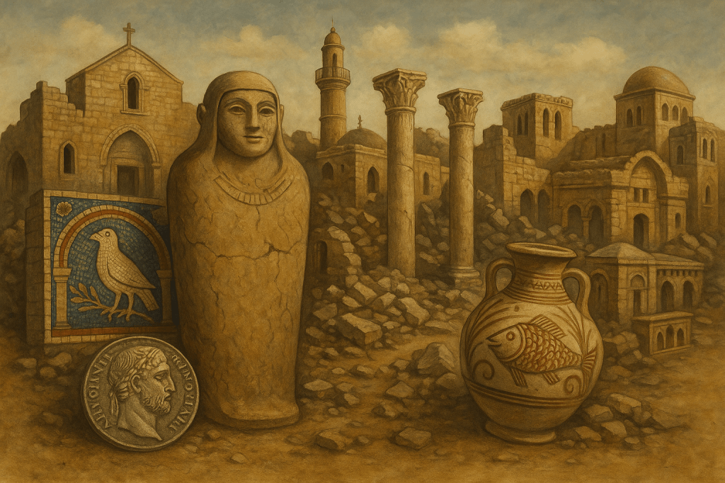 L’età bizantina aveva lasciato a Gaza alcune delle più antiche chiese della cristianità: la basilica di Jabalia con i suoi mosaici del V secolo, la chiesa di San Porfirio, ancora oggi luogo di culto dei cristiani ortodossi, e il monastero di Saint Hilarion, culla del monachesimo palestinese, fondato nel IV secolo. Tutti questi siti sono stati distrutti o gravemente danneggiati. I mosaici bizantini, che ancora splendevano sotto la luce del sole, sono stati ridotti a frammenti irriconoscibili.