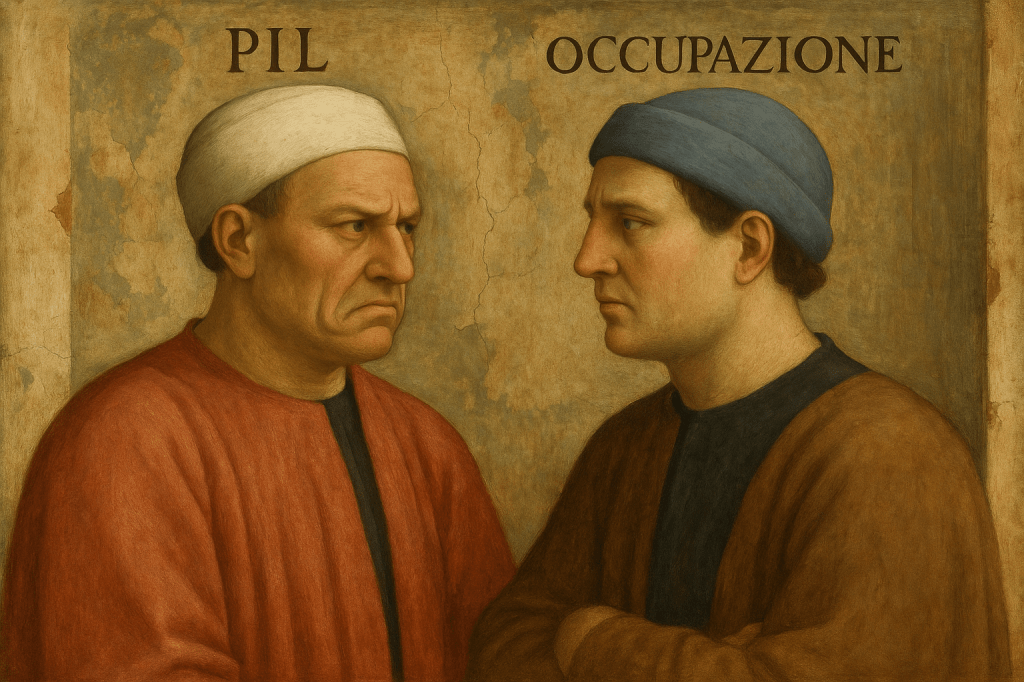 I numeri, presi da soli, sembrano una buona notizia. Secondo gli ultimi dati Istat aggiornati a ottobre, gli occupati in Italia hanno toccato un massimo storico: circa 24,2 milioni di persone, con un tasso di occupazione al 62,7%, una disoccupazione intorno al 6% e un tasso di inattività al 33,2%, tra i più alti d’Europa. Nello stesso tempo, però, la stessa Istat prevede per l’economia italiana una crescita del Pil intorno allo 0,5% quest’anno e poco sopra lo 0,7–0,8% nel 2026. Il linguaggio è quello consueto: crescita “zero virgola”. Da qui la domanda, inevitabile: com’è possibile avere più persone al lavoro, senza avere più ricchezza prodotta? Perché lavoro e Pil, che per anni venivano presentati come grandezze che camminano insieme, oggi sembrano correre su binari diversi? Per provare a capirlo bisogna entrare un po’ sotto la superficie dei numeri.